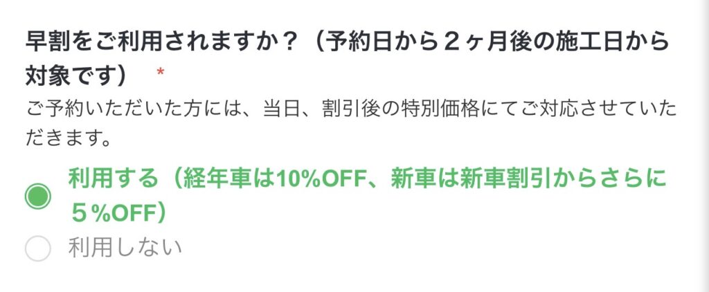 施工日が2ヶ月後以降のご予約で、早割をご利用いただけます。
