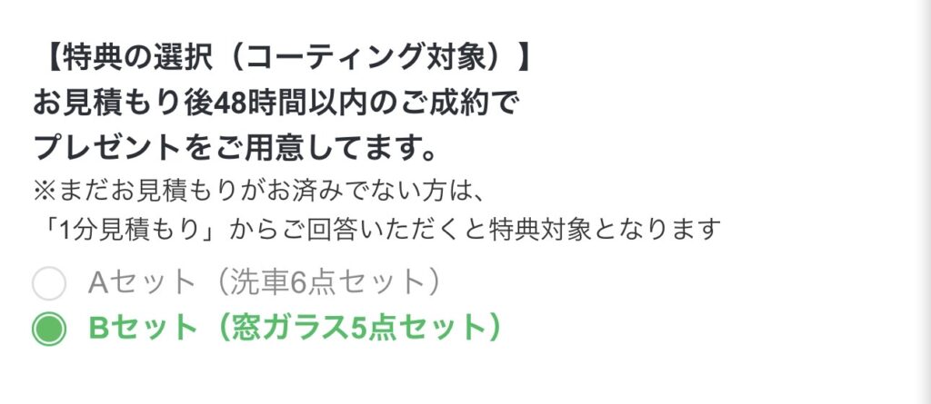 説明文お見積もり後48時間以内にコーティングをご成約いただいたお客様へ、