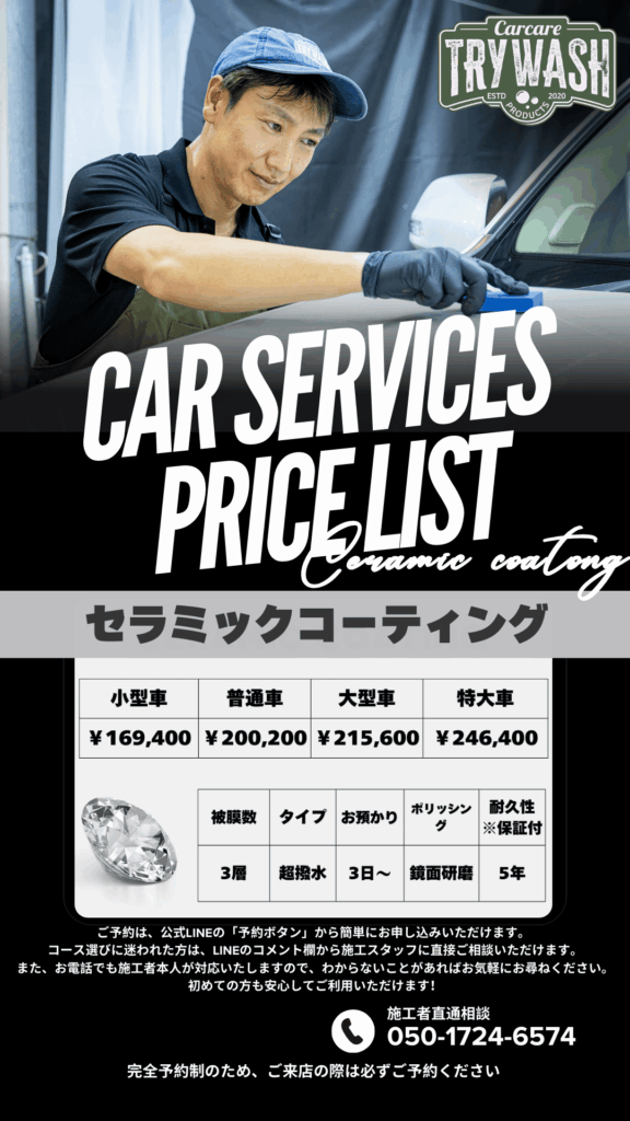TRY WASHは下地処理(洗浄・研磨)に徹底的にこだわる、地域屈指のコーティング専門店です。