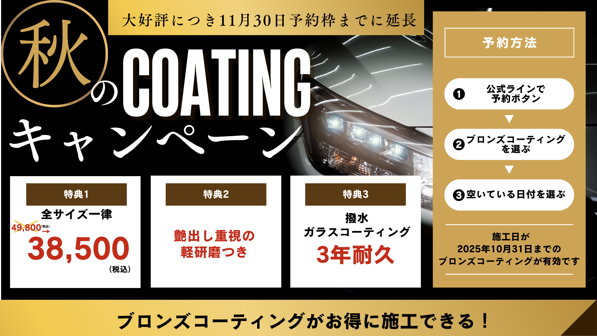 当店人気No.1!3年耐久ガラスコーティング