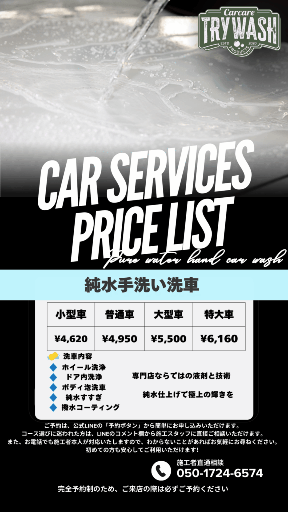 純水とは、水シミの原因となる不純物を高度な濾過処理で取り除いた特別な水のことです。 全工程を純水のみで行うことで、洗車後の仕上がりに透明感が生まれ、美しい輝きがより一層引き立ちます。